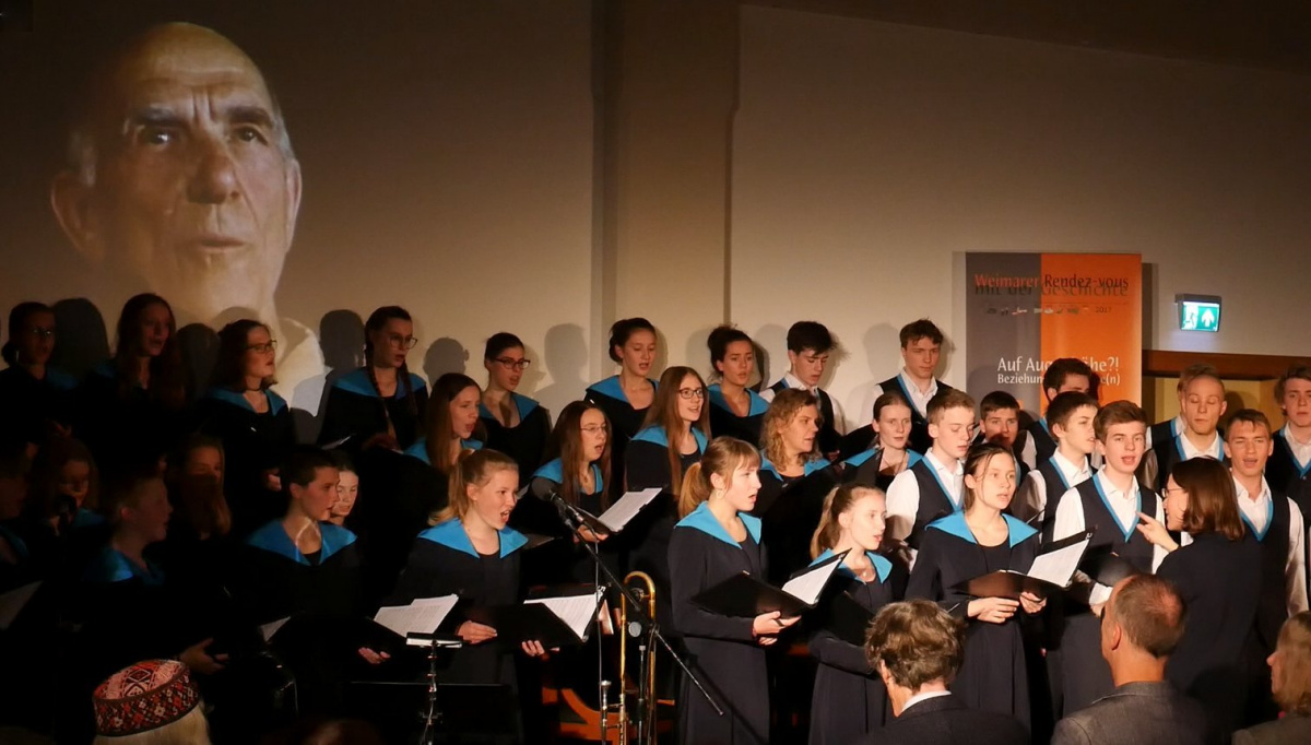 Mitwirkende: Regine und Detlef Heintze lesen die von Dr. Michael Kogon ausgewählten Gedichte von Stéphane Hessel, Silke Gonska (Gesang) & Frieder W. Bergner (Tuba, Posaune), Jugendchor der schola cantorum weimar (Leitung: Cordula Fischer)