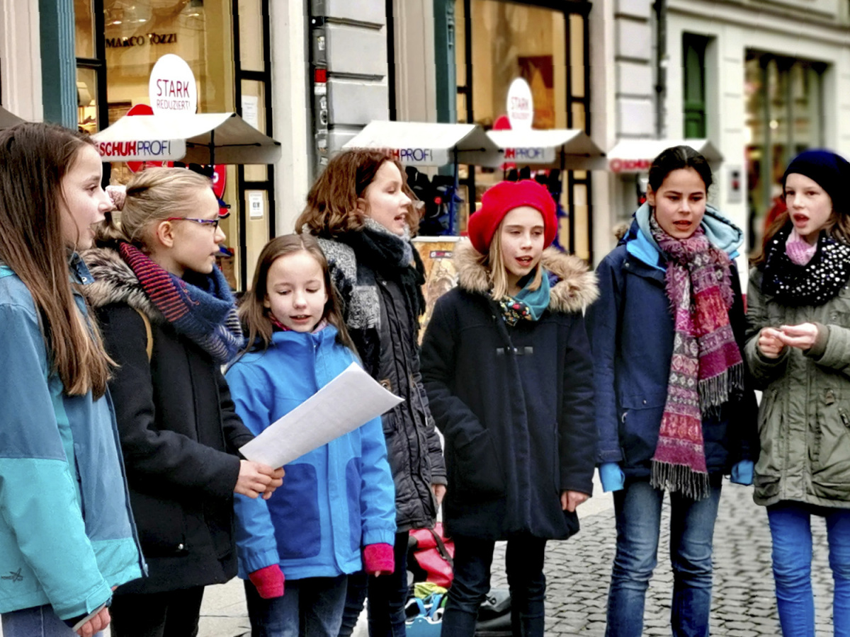 Die Mädchen haben sich auf eigene Initiative zu einem einstündigen »Sing-In« in der Schillerstraße verabredet und auf diese Weise rund 50 Euro zur Unterstützung der laufenden Crowdfunding-Kampagne gesammelt. Ein großes Dankeschön für euer Engagement!