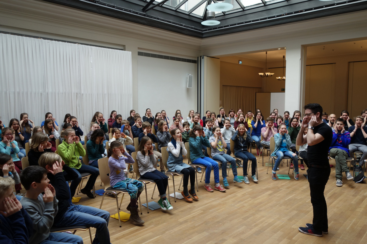 Seit heute (Freitag, 21.04.2017) früh bereiten knapp 150 Sängerinnen und Sänger der schola cantorum weimar und der Chorakademie Erfurt ein Konzert im Rahmen der Bachwochen 2017 vor. Zwei Tage lang arbeitet das berühmte Vokalensemble "Voces 8" mit den begeisterten Kindern und Jugendlichen an einem anspruchsvollen Konzertprogramm. Da wird gezischt, gesungen, Geräusche vom Beginn der Welt produziert und mit Beatbox und Body Percussion munter drauf los improvisiert... Wir freuen uns auf einen spannenden Nachmittag mit Musik von Bach bis "Don't worry, be happy".