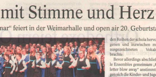 Zeitungsartikel zum Festwochenende anlässlich des 20-jährigen Bestehens der schola cantorum weimar – in »Thüringer Allgemeine und Thüringische Landeszeitung«, 25. April 2022
