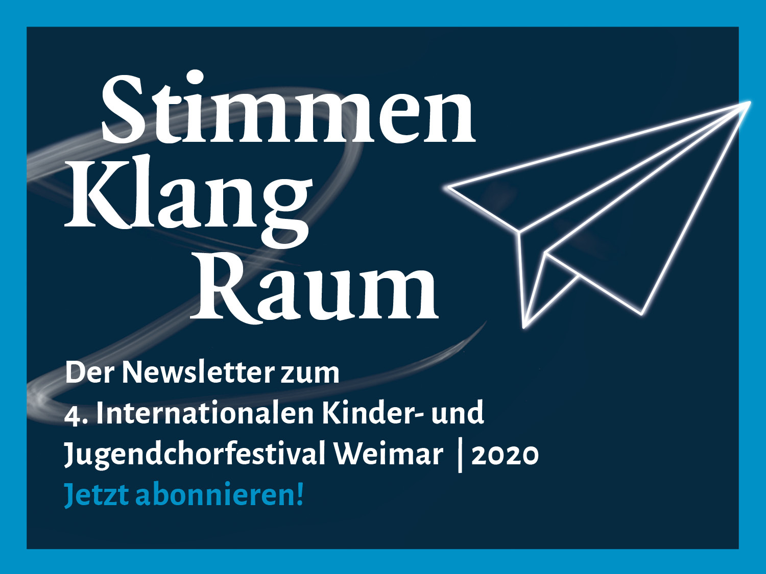 Ein ereignisreiches Jahr 2019 neigt sich dem Ende und das neue Jahr steht schon mit aufregenden Projekten vor der Tür: Vom 16.–19. April lädt unser Chor zum 4. Internationalen Kinder- und Jugendchorfestival »StimmenKlangRaum« nach Weimar ein. Die Vorbereitungen dafür laufen bereits auf Hochtouren. Alle sind herzlich eigeladen, das Festival mitzugestalten, sich ehrenamtlich zu engagieren, Gäste zu beherbergen oder einfach unsere Crowdfunding-Kampagne zu unterstützen.